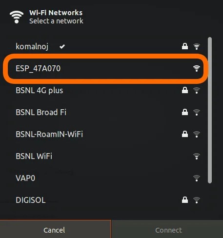 - Before turning WiFi Off it shows ESP_47A070 MAC address last six digits.